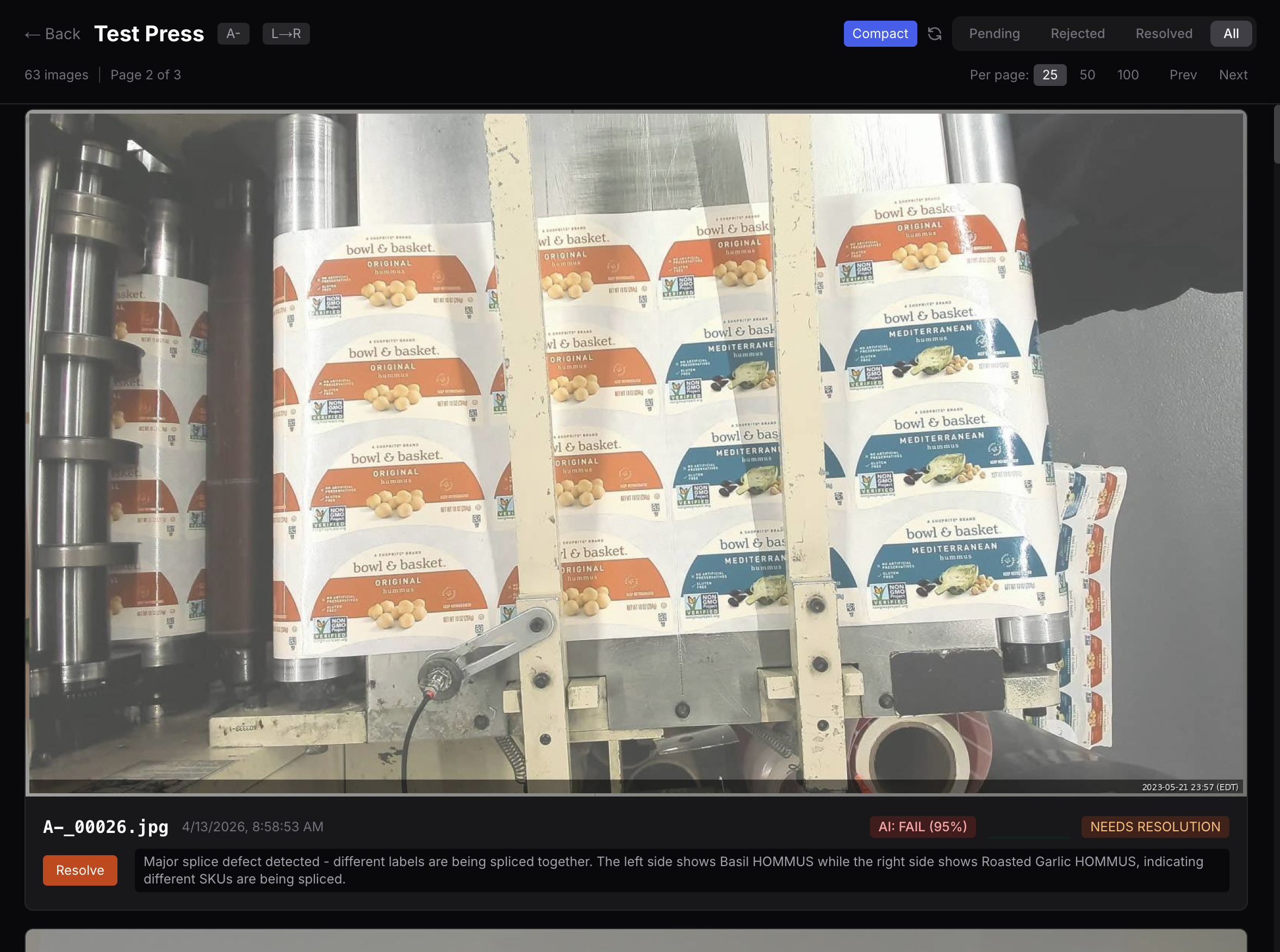 A full visual audit trail of every splice going through your rewinder. AI-powered pass/fail inspection with human-in-the-loop QC review, built for ISO traceability and real-time accountability.